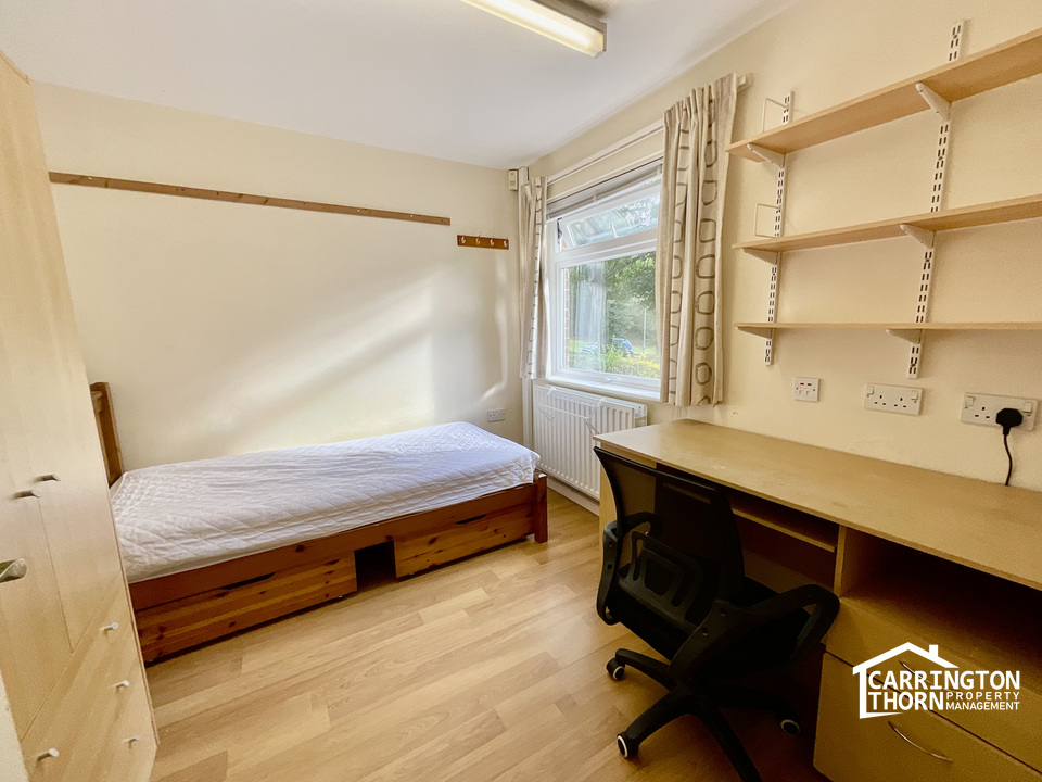 Each of the five bedrooms comes fully furnished with a single bed, wardrobe, desk, and chair—making it ideal for both study and downtime. Two modern bathrooms help ensure convenience for all occupants, while the property’s end-terrace position brings extra light and privacy.